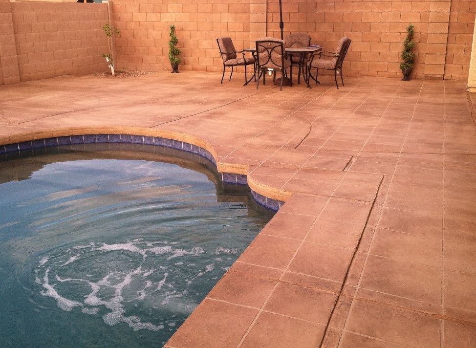 When a spill does occur you should clean up the surface as soon as possible. Any stain left on the surface for long periods of time is more difficult to remove and will potentially become part of the surface. Potted plants should be elevated above the surface to prevent rings. Watered plants should have a pan or saucer underneath to catch water over flow and prevent hard water stains from working there way into the surface. Pans should be placed underneath vehicles that constantly leak. The oil from the vehicle will wash off, however constant oil and cleaning will prematurely wear the sealant. Highly corrosive materials should be prevented from touching the surface. Items such as battery acid and radiator coolant could cause the acrylic concrete to discolor.